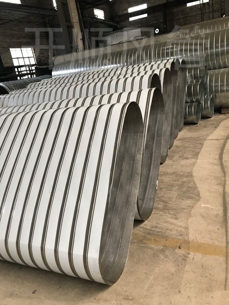 螺旋風管:螺旋風管是用金屬帶料卷做成螺旋狀咬縫的厚壁管,環形,主要特點:無電焊焊接,不漏汽,不滲水,多用以排風和散稱原材料輸送,替代傳統式的白鍍鋅管(即手工制作咬縫鍍鋅管)。是通風風管的一種,不用手工制作敲擊,目前市面上都有很多螺旋風管廠家都有在生產這樣的螺旋風管。